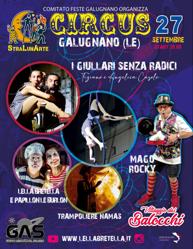 Artisti di Strada Puglia è il portale ideale per scoprire e contattare direttamente artisti e performer senza intermediari. Offre un’ampia selezione di trampolieri, giocolieri, sputafuoco, mimi, clown, maghi, acrobati e molti altri artisti per eventi privati, matrimoni, sagre, feste di paese ed eventi aziendali. Personalizza il tuo evento con spettacoli e animazioni su misura in tutta la Puglia, comprese città come Bari, Lecce, Brindisi e Taranto. Visita il sito per prenotare artisti e rendere il tuo evento indimenticabile.