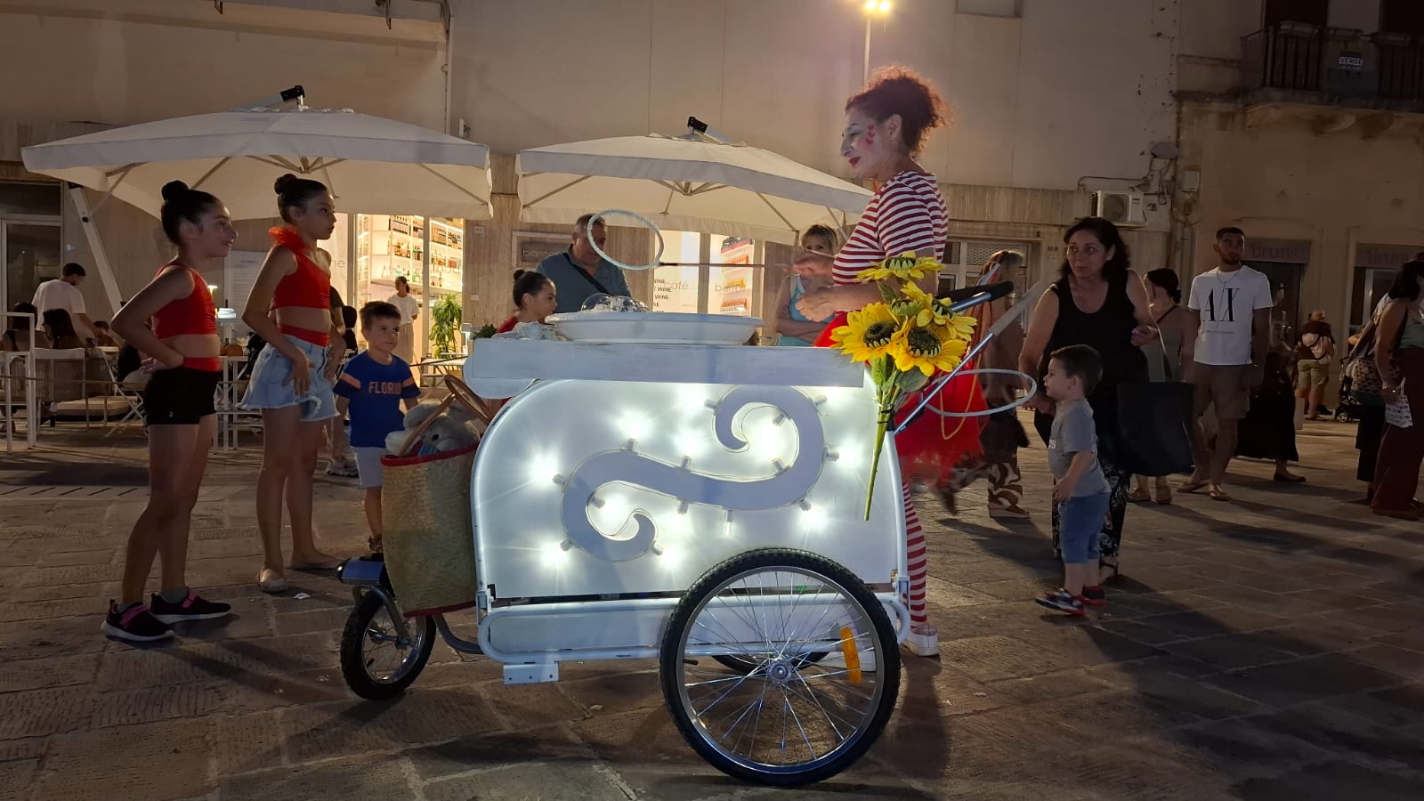 Il cuore dello spettacolo è un suggestivo carrettino scenografico, dotato di impianto audio autonomo, che diventa il punto di partenza per numeri coinvolgenti e sempre diversi.